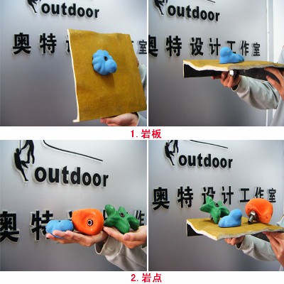⑴擁有平直板、斜直板、三維立體曲面(簡(jiǎn)稱3D)板、弧形板等幾十種板型,各板型間可自由拼接組合,過(guò)渡自然、滑順,造型豐富多變,表面呈現(xiàn)的起伏大且變幻莫測(cè)的非平面立體變化,完全打破了傳統(tǒng)的攀登者早已熟、膩的平直系統(tǒng),使攀登者仿佛置身于自然巖壁之間。