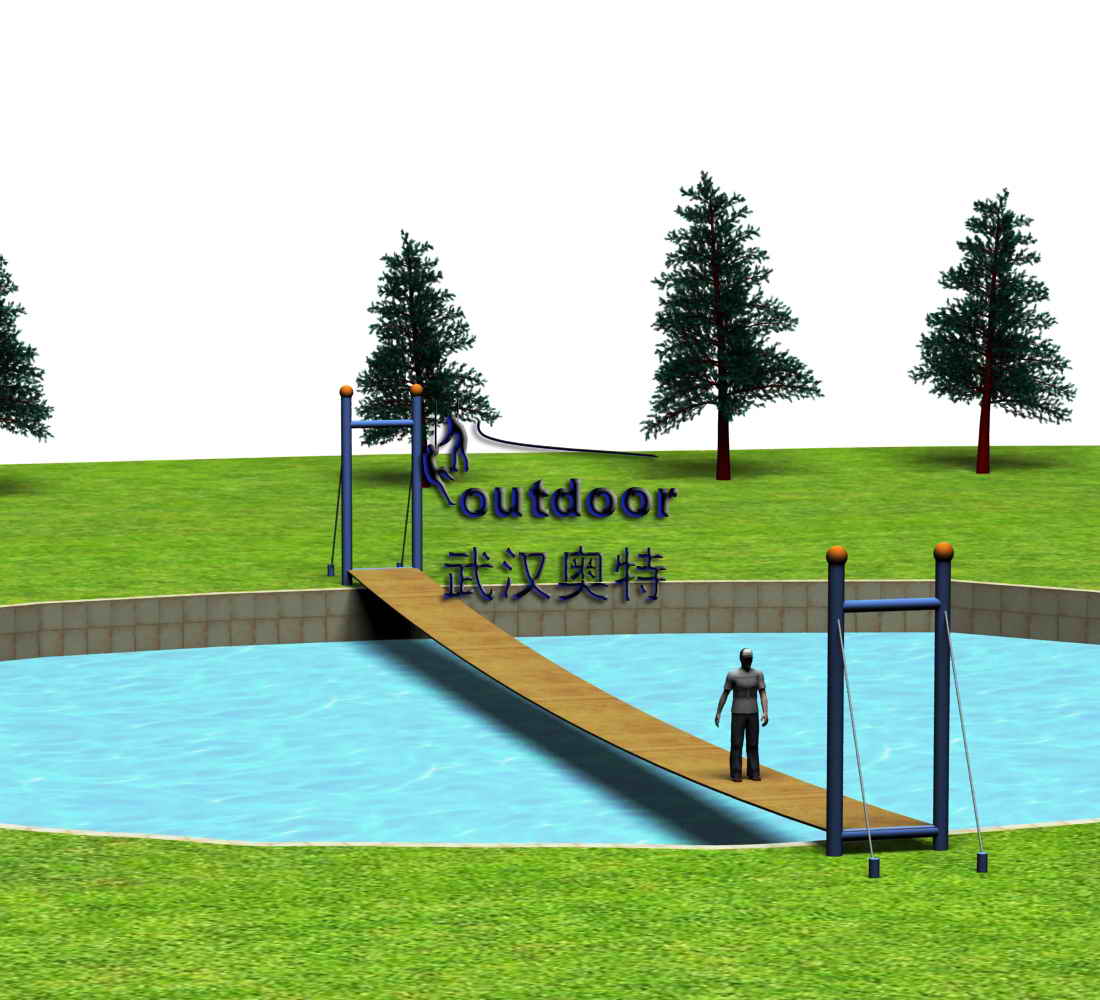 拓展器材產(chǎn)品介紹:參與者站立于整體晃動的木板橋面,體驗水面漂浮的感覺吧。