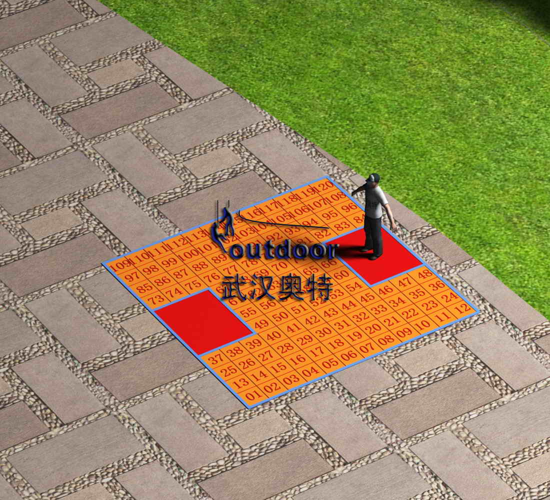 每次只能有一人進(jìn)入雷區(qū),其他人員站在雷陣圖進(jìn)口一側(cè),每次只能向相鄰的格子任意移動一步。每移動一步,若教練宣布有雷則必須按原路返回。同一個有雷點只準(zhǔn)踩一次。不準(zhǔn)在雷陣圖上做永久性記號。在項目操作過程中教練將不回答任何問題。
