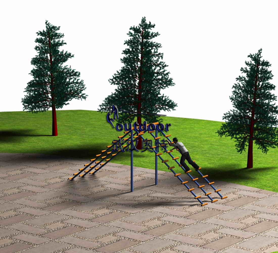 拓展器材產(chǎn)品介紹:三道鋼架云梯,體能與技巧的結(jié)合,需要翻越。