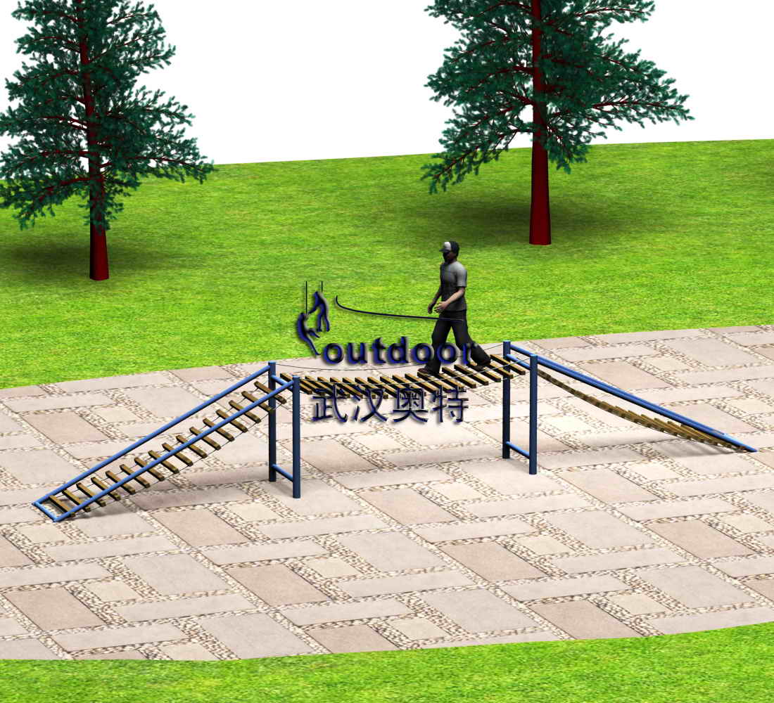 拓展器材產(chǎn)品介紹:波浪起伏的稀疏枕木相連橋面,多人或單人體驗(yàn)。
