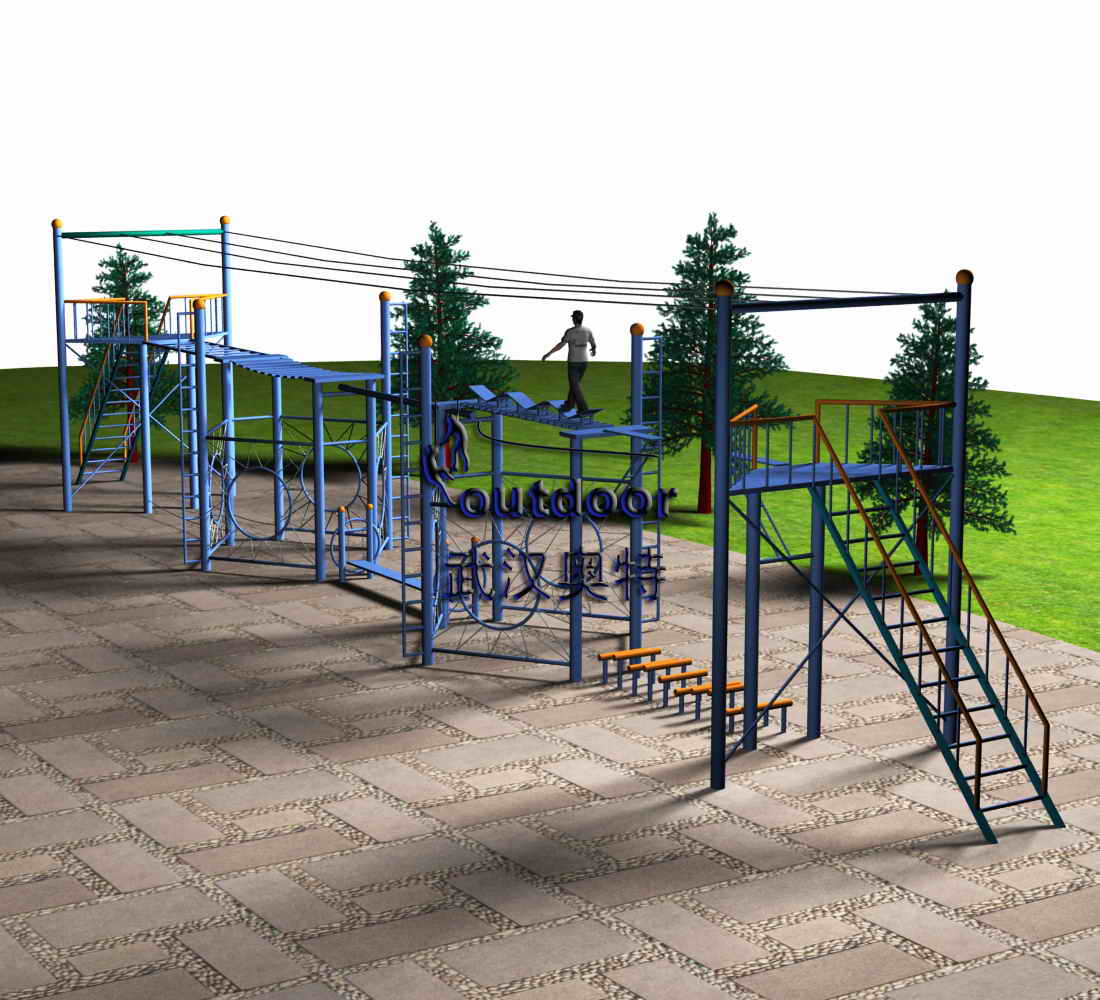 A、橫渡天梯 操作:操作者可選擇手抓橫桿,完全靠手臂的力量帶動身體前進,也可選擇從平躺的梯子上面攀爬通過。 功能:1、使操作者學(xué)會控制心態(tài),保持持續(xù)穩(wěn)定的情緒。 2、鍛煉操作者不畏艱辛,挖掘潛力、挑戰(zhàn)意志力的能力。 3、鍛煉手臂力量和平衡能力。 B、乘風(fēng)破浪 操作:操作者從翹板橋的一端出發(fā),經(jīng)過橋面上的翹翹板,到達另一端。 功能:1、提高在高壓下解決問題的能力。 2、提高對自身的控制能力。 3、提高身體協(xié)調(diào)能力。 C、高空獨木 操作:操作者準(zhǔn)備好后迅速從獨木的一端穿越至另一端。 功能:1、增強心理穩(wěn)定性。 2、培養(yǎng)自我挑戰(zhàn)的勇氣和膽量。 3、培養(yǎng)敏捷的反應(yīng)能力和身體控制能力。 4、提高平衡能力和協(xié)調(diào)能力。 D、瀘定橋 操作:操作者從橋的一端出發(fā),迅速通過瀘定橋到達另一端,在通過時伸開雙臂,可幫助保持身體的平衡。 功能:1、使操作者學(xué)會控制心態(tài),保持持續(xù)穩(wěn)定的情緒。 2、鍛煉操作者不畏艱辛,挖掘潛力、挑戰(zhàn)意志力的能力。 E、高空斷橋 操作:操作者目視前方,從斷橋的一側(cè)助跑,借助后蹬力起跳,躍過斷開部分,落到斷橋另一側(cè)。 功能:1、培養(yǎng)個體不怕困難,不畏艱險的精神。 2、增強個體的膽量,培養(yǎng)克服恐懼的勇氣。 3、培養(yǎng)自我挑戰(zhàn)、突破自我的精神和能力。 4、開發(fā)個人潛能。 5、鍛煉彈跳力。固定兩段鋼板,中間留約成年人一大步的距離。 F、齊心協(xié)力 操作:兩名操作者分別站在兩根鋼絲上,面對面,雙手與對面的隊員相握,保持平衡,依靠對方的力量支持從鋼絲的一端走到另一端 功能:1、培養(yǎng)合作精神和協(xié)調(diào)能力,建立相互協(xié)作的、和諧的人際關(guān)系。 2、增強對共同解決問題時團隊成員步調(diào)的一致性的認(rèn)識。 3、樹立正確的自我觀念。 4、培養(yǎng)個體敏捷的反應(yīng)能力和身體控制能力。 G、鉆網(wǎng) 操作:操作者從五角星形狀的孔內(nèi)進出、追逐。 功能:1、鍛煉攀爬能力和四肢協(xié)調(diào)能力 2、增加活動樂趣。 H、禮讓通行 操作:全體成員隨機站上晃板,在規(guī)定的時間里、并且在不能有人掉到地面上的前提下完成任務(wù)。 功能:1、訓(xùn)練團隊在短時間里建立統(tǒng)一指令、達成一致行為。 2、培養(yǎng)良好的人際關(guān)系與互動狀態(tài)。 3、體驗領(lǐng)導(dǎo)的作用和對集體的影響。 4、學(xué)習(xí)在條件限制與手忙腳亂的情景下進行良好溝通的方法。 5、理清角色與分工,合理分配與運用資源。 6、增強個體的手臂、腰部、腿部力量、身體協(xié)調(diào)能力與平衡力。 I、鉆網(wǎng) 操作:操作者從五角星形狀的孔內(nèi)進出、追逐。 功能:1、鍛煉攀爬能力和四肢協(xié)調(diào)能力。 2、增加活動樂趣。 J、攜手并進 操作:兩人一組,從器材的一端出發(fā),不斷變換身體姿勢,有創(chuàng)造性地、靈活、及時地選擇落腳點,并保持兩人步調(diào)的一致性。 功能:1、增強協(xié)作意識和協(xié)調(diào)解決問題能力,培養(yǎng)團隊成員步調(diào)一致性。 2、重塑正確的自我觀念。 3、培養(yǎng)創(chuàng)造性思維和在解決問題過程中及時調(diào)整策略和方法的能力。 4、培養(yǎng)耐心細致解決問題的能力。 5、鍛煉手眼協(xié)調(diào)能力和快速反應(yīng)能力。 |